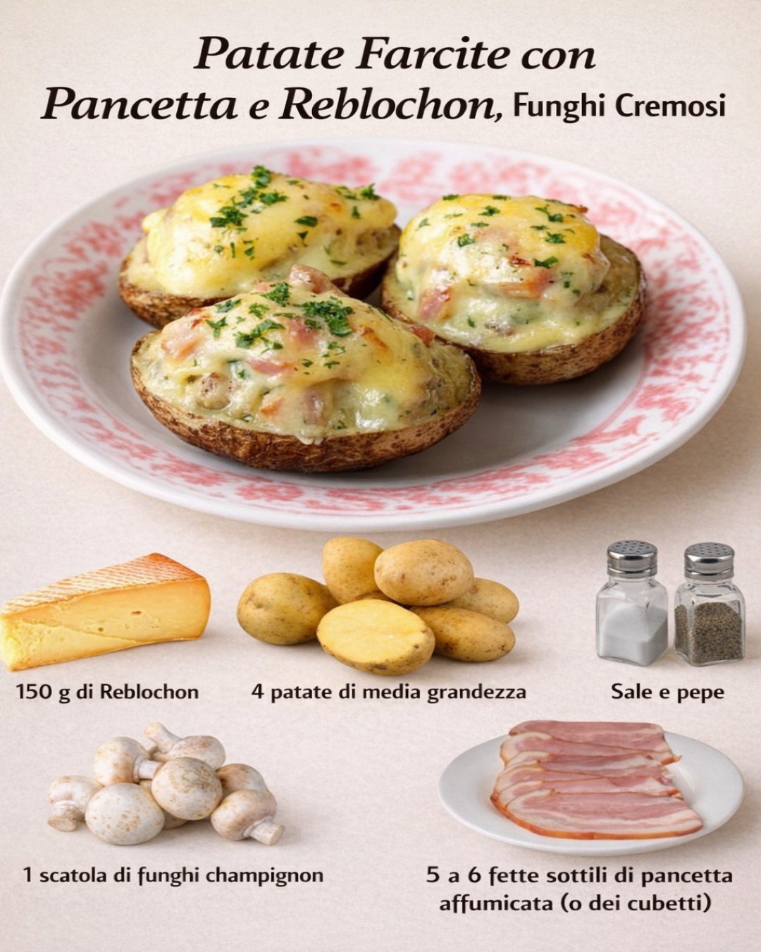 Un piatto ricco e cremoso, ideale per chi ama i sapori intensi e avvolgenti. Il formaggio fuso e la pancetta rendono queste patate davvero irresistibili.