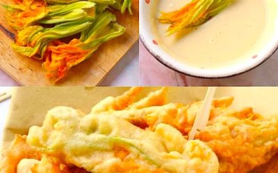 Ingredienti:Fiori di zucca freschi 100 gFarina tipo 0 300 gAcqua 240 mlLievito di birra fresco 5 gParmigiano grattugiato 2 cucchiaiUovo…