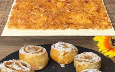 Se hai la pasta sfoglia, grattugia semplicemente 2 mele, il dessert sarà pronto in 10 minuti! Ingredienti:Impasto: 500 g (comprato…