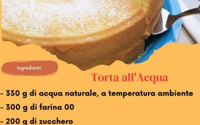 Torta all'AcquaINGREDIENTI PER UNO STAMPO DI 24 CM DI DIAMETRO- 330 g di acqua naturale, a temperatura ambiente- 300 g…