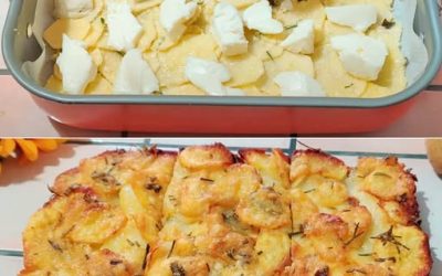 Ingredienti:4 patate60 gr di parmigiano grattugiatosalvia e rosmarino tritato100 gr di stracchinosale, pepe e olio d’olivaPreparazione: