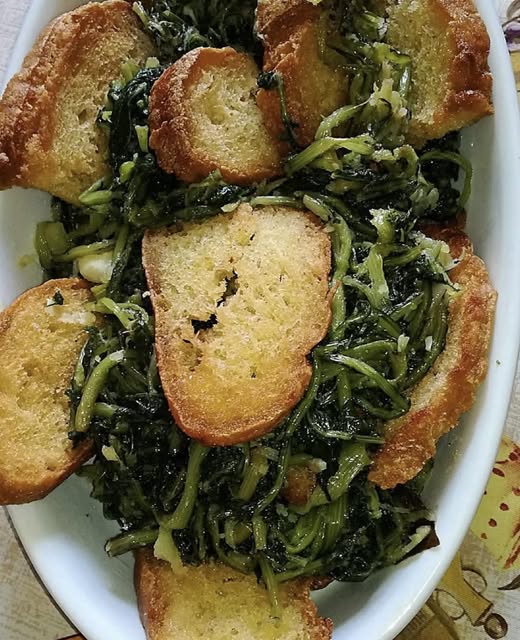 IL PANCOTTO con cicorie selvatiche, patate, cipolle, aglio e pane fritto.