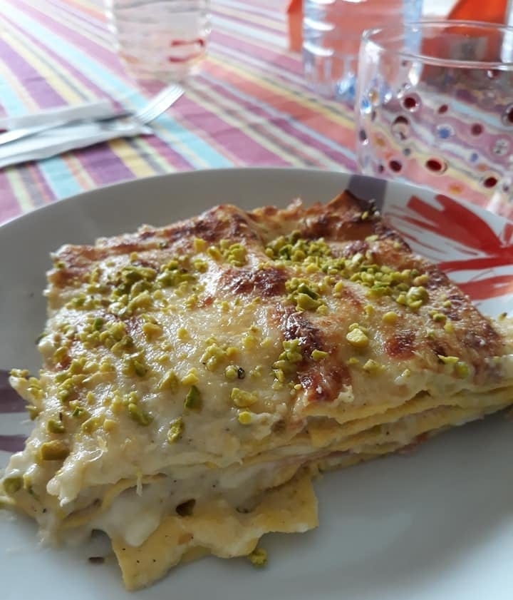 Lasagne con mortadella e pistacchi