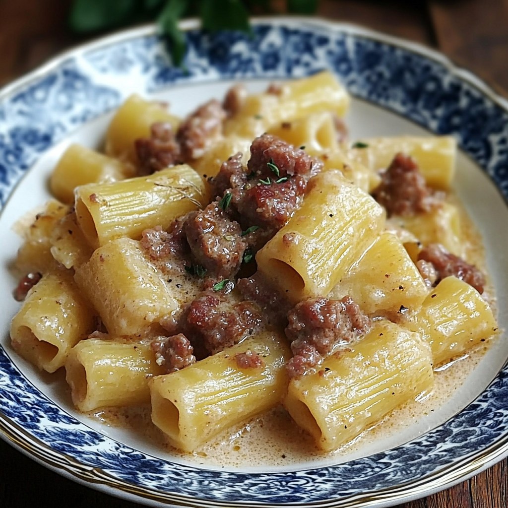 Mezze Maniche con Salsiccia, Crema di Patate e Provola – Un piatto cremoso e ricco di sapore che farà innamorare tutti!