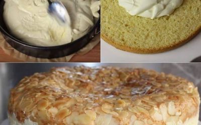Ingredienti:Pan di spagna:4 uova200 gr zucchero1 confezione zucchero vanigliato240 gr farina1 bustina di lievito per dolciMandorle in scaglieCrema:600 gr panna…