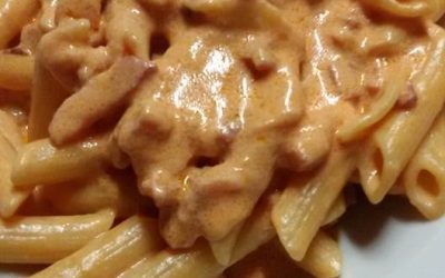 Penne fumèFare un soffritto di cipolla ed uno spicchio d aglio e del peperoncino si può anche nn aggiungere ....…