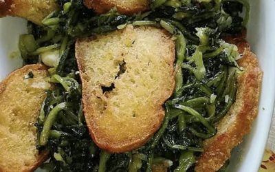 IL PANCOTTO con cicorie selvatiche, patate, cipolle, aglio e pane fritto.