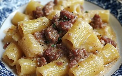 Mezze Maniche con Salsiccia, Crema di Patate e Provola – Un piatto cremoso e ricco di sapore che farà innamorare…