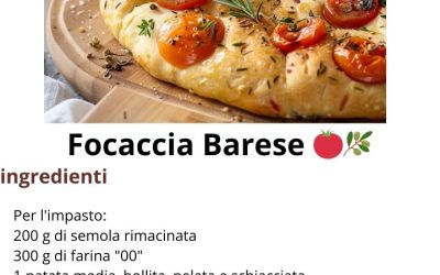 Focaccia Barese Ingredienti:Per l'impasto:200 g di semola rimacinata300 g di farina "00"1 patata media, bollita, pelata e schiacciata350 ml di…