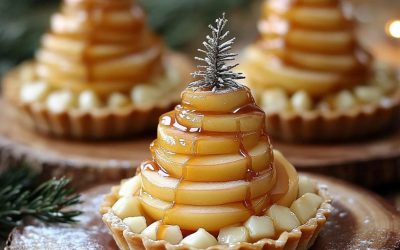 Tartellette di Natale con Mela Caramellata e Brie Piccole delizie in pasta sfoglia a forma di albero di Natale, farcite…
