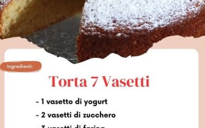 Torta 7 VasettiUna torta soffice e facilissima da preparare, senza bilancia! Ingredienti:1 vasetto di yogurt (125g)2 vasetti di zucchero3 vasetti…
