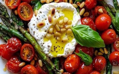 Insalata di asparagi grigliati e pomodorini con burrata**Ingredienti:- 1 mazzo di asparagi (mondati)- 1 tazza di pomodorini (metà)- 1 pallina…