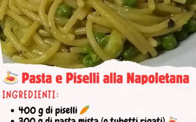 Pasta e Piselli alla Napoletana Ingredienti:400 g di piselli 300 g di pasta mista (o tubetti rigati) 2 uova 1/2…
