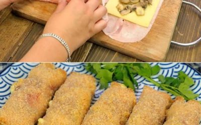 Involtini di prosciutto cotto, formaggio e funghi: rotolini sfiziosi. croccanti e saporiti!