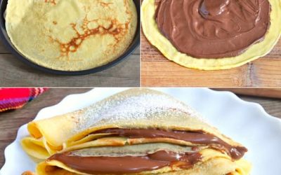 Ingredienti:3 uova125 g di farina 00250 ml di latte30 g di burro fuso1 cucchiaio di zuccheroUn pizzico di saleNutella q.b.Preparazione: