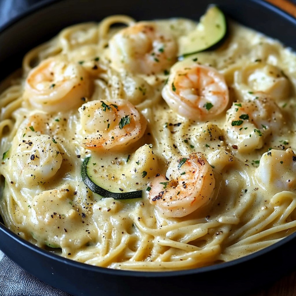 Pasta Cremosa con Zucchine e Gamberetti