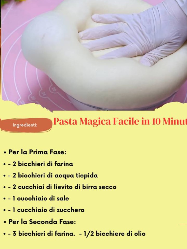 Oggi vi propongo la **pasta magica**! Una ricetta davvero versatile e rapida da preparare, perfetta per realizzare piatti sia dolci che salati, come pizza, brioche, panini, ciambelle e altro ancora. La pasta si realizza in due fasi con solo 10 minuti di riposo tra le due, e non richiede ulteriori tempi di riposo.