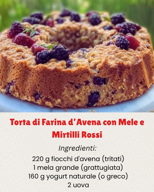 Torta di Farina d'Avena con Mele e Mirtilli Rossi
