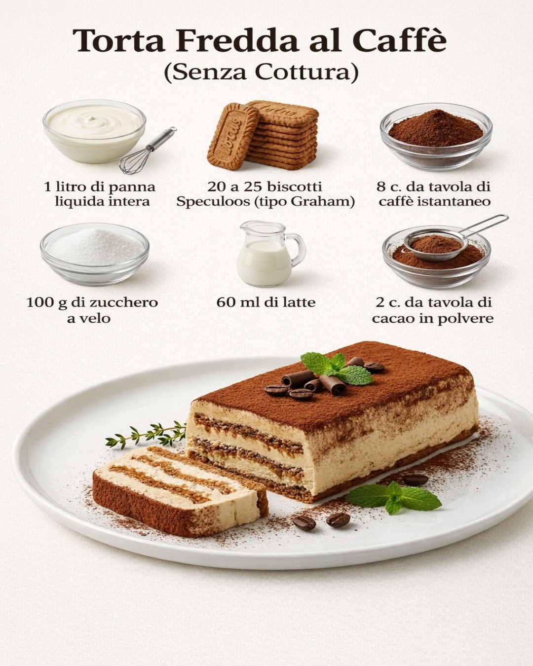 La torta fredda al caffè è un dessert senza cottura elegante, cremoso e perfetto per chi ama i dolci dal gusto intenso ma delicato. Gli strati di biscotti e crema al caffè si uniscono in una consistenza morbida e fresca, ideale da servire ben fredda.
