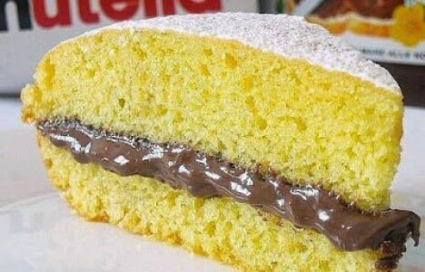 Ingredienti per 4 persone 4 uova, 150g di zucchero, 100g di burro fuso, 200g di farina, 1 pizzico di sale, scorza di limone, 1 bustina di lievito in polvere. 400g di nutella per la farcitura, zucchero a velo per cospargere